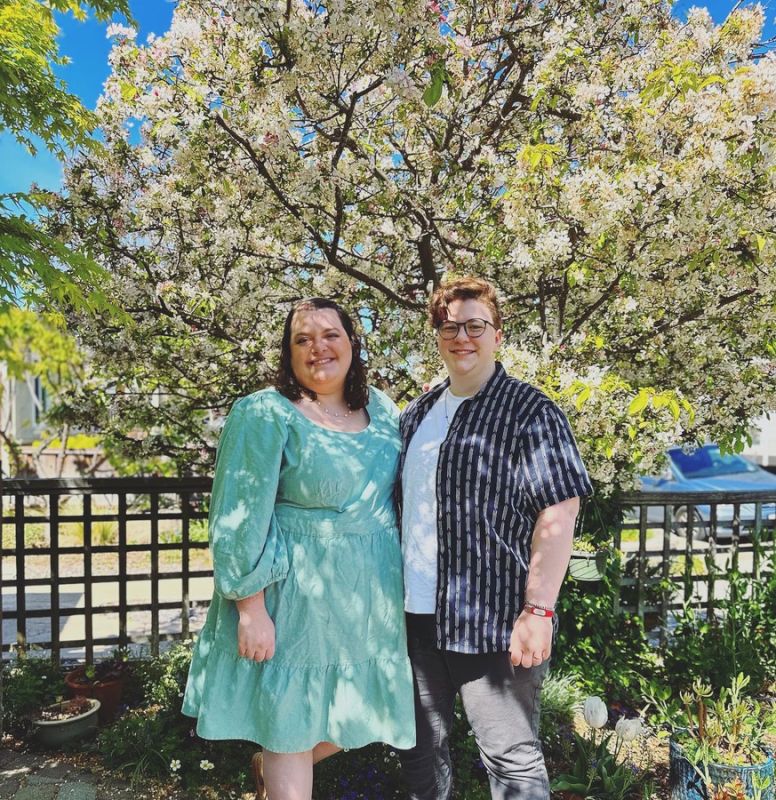 We’ve been together for nine years, married for three, and we’ve known we wanted to pursue parenthood since the beginning. Family and friends are incredibly important to us: we live in a multigenerational home with Caitlin’s parents, and we often have visitors in our guest room! It’s that shared value of loving our community that really connected us in the beginning of our relationship, and that value has enabled our beautiful chosen family to thrive around us. Caitlin has chosen a flexible career working in training and development for a medical device company to ensure her future ability to be present as a parent, and Jules chose to pursue education in environmental restoration for the same reason. We care deeply about the flexibility of our schedules to enable us to be there for our loved ones, and we want to ensure we are always there for our child.